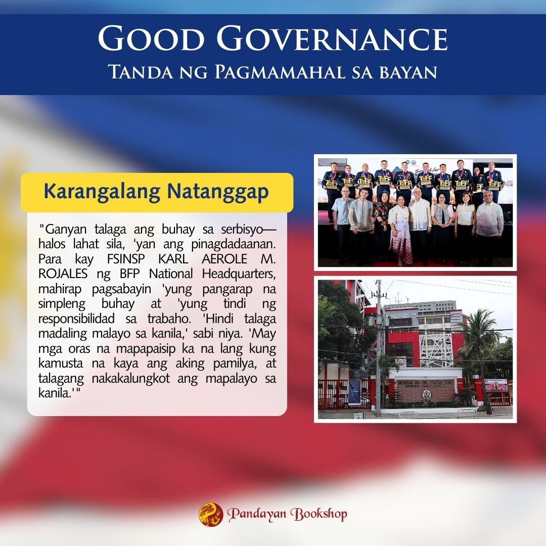 Nakikiisa ang Pandayan Bookshop sa pagtataguyod at pagdiriwang ng mga natatanging indibidwal at institusyon na nagpakita ng malasakit at pagmamahal sa larangan ng serbisyo publiko bilang patunay na buhay ang GOOD GOVERNANCE sa ating lipunan.